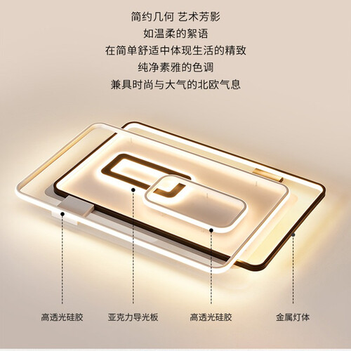 采用多模块组合透光,具有时尚艺术感。360°环形布光,空间更明亮,感受几何艺术美。创意浪漫线条设计,北欧氛围感十足。