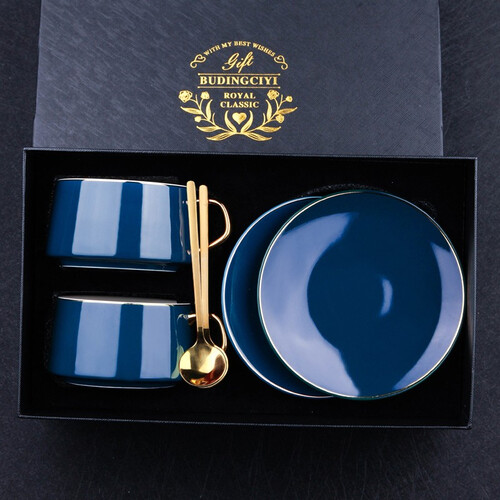 极具轻奢感的蓝色外观,杯身圆润光滑,金色描边加以点缀,更有质感。采用陶瓷材质塑造而成,不含铅化物,安全更健康。