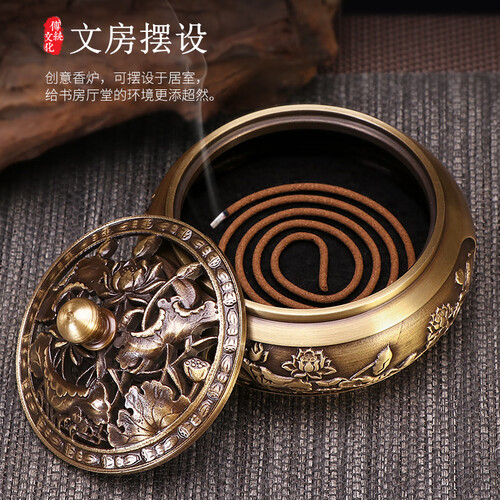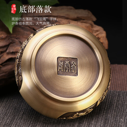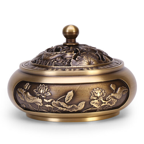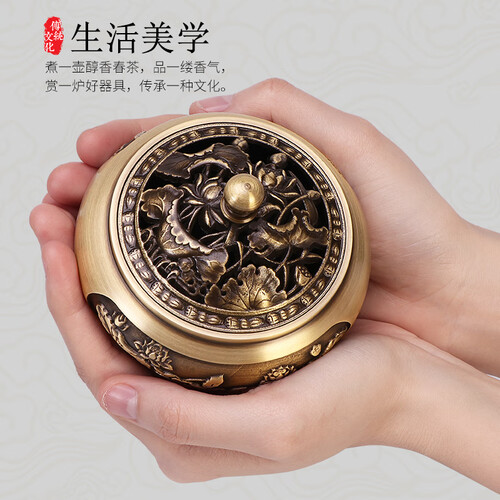 此款香炉采用整块黄铜车制技术,古朴典雅助您禅定静心。精雕镂空工艺,整洁光滑颇具质感。