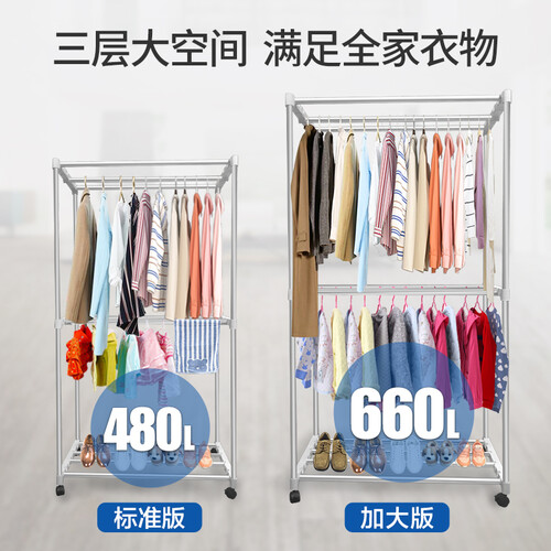 干衣机的干衣温度可四挡位自由调控,满足丝绸、棉麻等不同面料的干衣需求。布罩采用高密度牛津布制成,既防水防尘还结实耐磨。