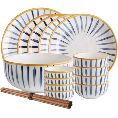 混色设计的日式陶瓷餐具套装,图案不一,各个碗碟各具特色,创意不单调,令人赏心悦目,轻松唤醒您的食欲。