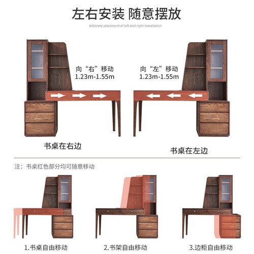 采用可伸缩设计,根据户型大小可随意调整角度,增加实用性。书桌、书架、书柜均可自由调节,贴心又实用。