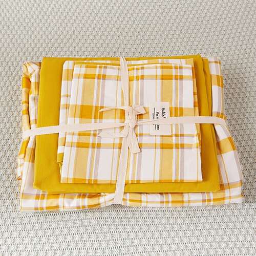 选取高支高密面料,手感舒适,同时采用了活性环保印染工艺,色彩靓丽而且久洗如新,而床单款式简约大方,能够百搭家居风格。