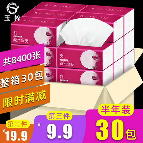 玉棉 整箱装软质面巾抽纸