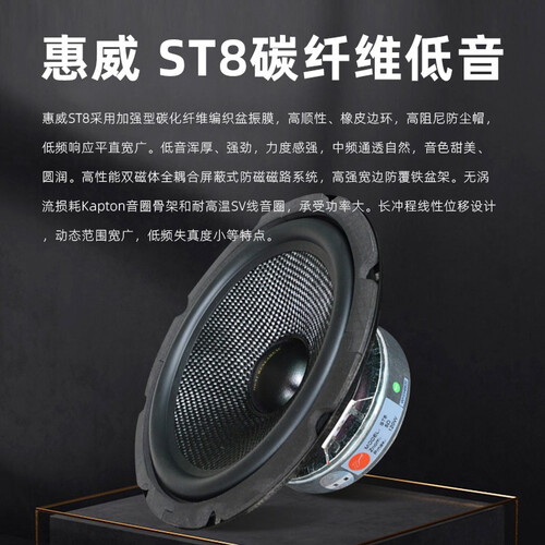 采用纤维编织的特殊阻尼涂敷,从而可以使其声音更加的自然准确,且降低失真,可延宽低频的响应范围。