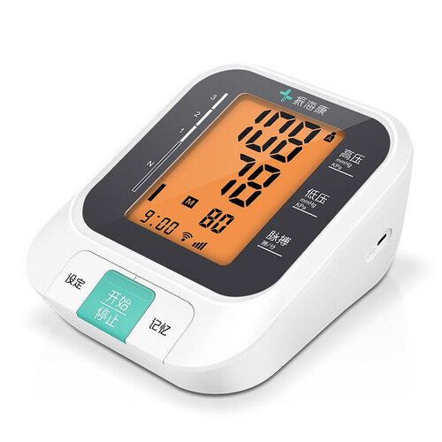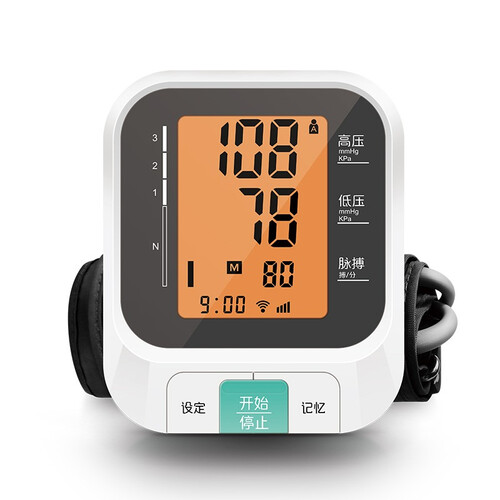 橙色背光大屏,夜晚也可轻松读取数值。双人组各120组记忆数值,方便日常血压监测。测量结束后2分钟,自动进入待机模式。