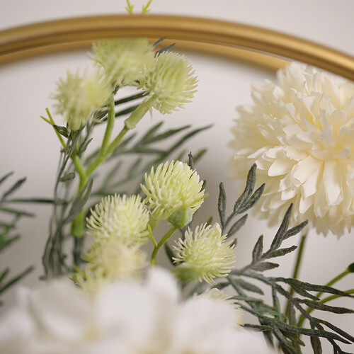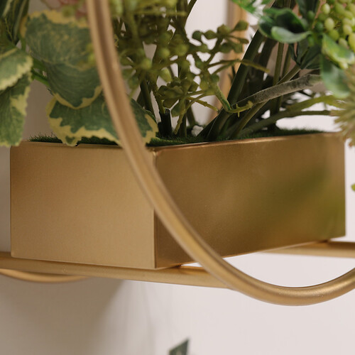 金属材质的仿真植物壁饰,经过花艺师精心插制而成,使其富有柔和而浪漫的色彩,能够赋予室内空间美好的氛围,塑造生活的仪式感。