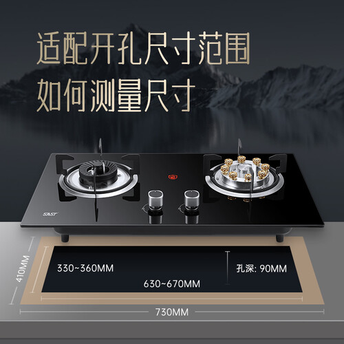 火盖选用纯铜材质打造而成,坚固可靠不易变形,长久耐用。具有台嵌两用式的设计,能够满足不同厨房的安装需求。