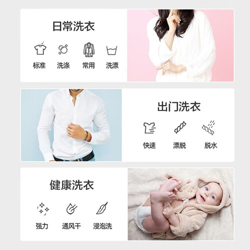 这款洗衣机搭载品质电机,洗涤时噪音低,不打扰日常生活。单洗单漂设置,简单实用,满足不同需求。身材小巧,节省放置空间。