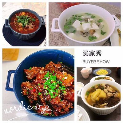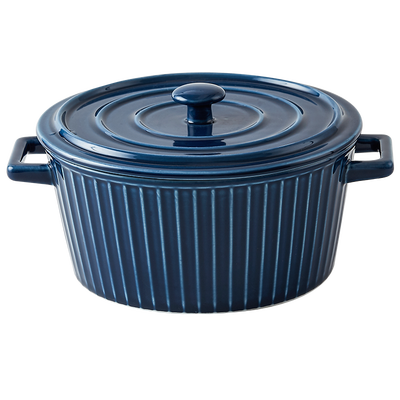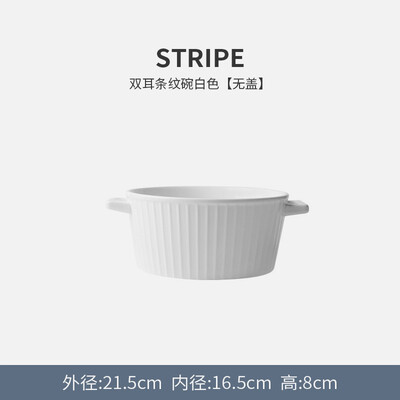 采用3D立体的条纹质感,釉面亮润更好衬托食物,结合釉下彩工艺,整体呈现清新淡雅的感觉。双耳设计方便端拿。