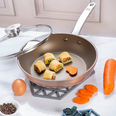 人体力学手柄的设计,能够使您握持时手感更加的舒适,且有效防止烫手。搭配上太阳花锅底设计,可让平底锅导热时更均匀。