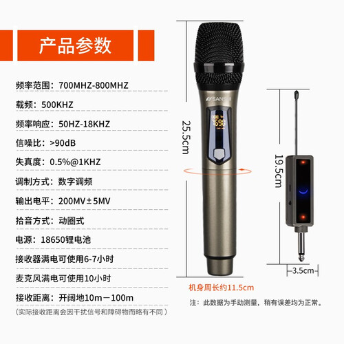采用UHF高频波段,信号接收能力良好,不易产生掉线或串频现象。机身自带数字显示屏,实时显示数据,话筒工作状态更直观。