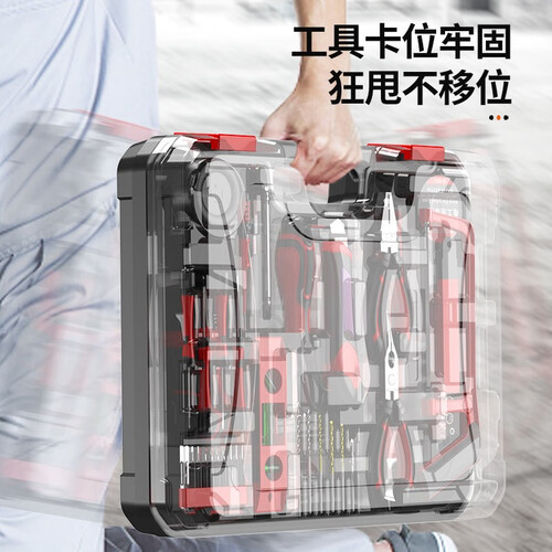 结实的盒体双层贴合设计,整洁收纳工具,方便外出携带和使用,27件综合维修工具,轻松应对家庭日常维修、安装、拆卸需求。