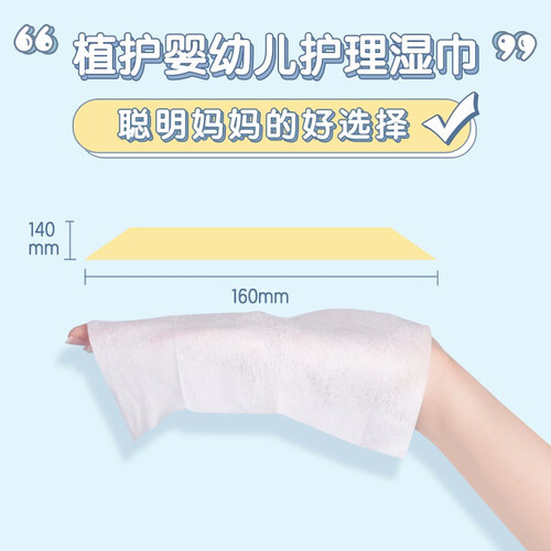 采用了水刺无纺布,触感亲肤柔软,给宝宝舒适的擦拭体验。搭配温和植物配方,添加了芦荟提取物,在清洁的同时滋养呵护肌肤。