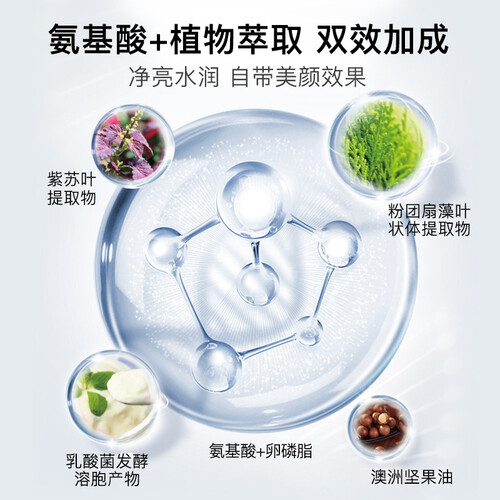 萃取植物精粹成分,富含密集水分子,层层渗透滋养肌肤,恢复肌肤水润亮白。搭配植物学氨基酸成分,保湿滋润,平衡肌肤水油。