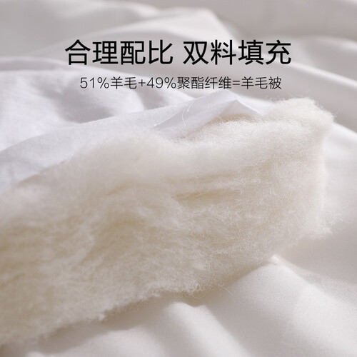 柔软的羊毛填充被子,吸湿能力强,久睡不闷热。质感蓬松不易结块,有效贴合人体,带来整夜干爽舒睡。