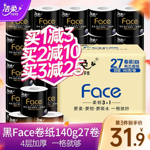 洁柔 黑Face4层卷纸