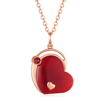 精选18K金材质制作而成,光泽闪耀久戴不易褪色。精美别致的红玛瑙爱心坠饰,凸显出爱情的浪漫梦幻气息。