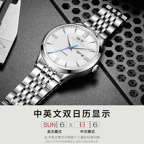 指针采用撞色设计,拒绝千篇一律的沉闷感,带来时尚活力。精致的钢带加持,长久佩戴不生锈。