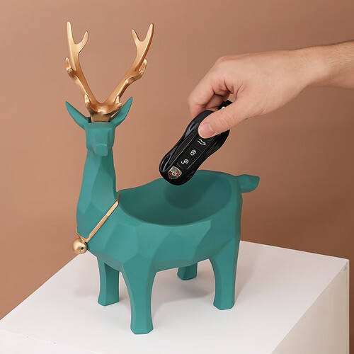 采用手工雕刻,麋鹿刻画更加生动形象,造型更鲜活。摆件具有收纳功能,可存放小物件,收纳更随心。