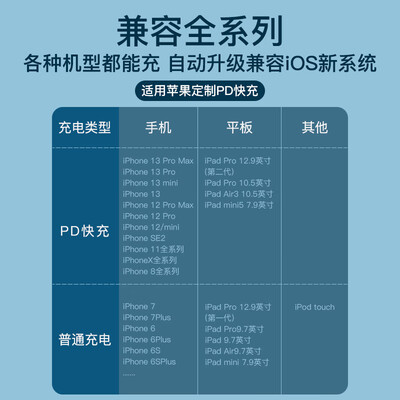 充电器小巧便携,可兼容iOS全系统,充电速度快,传输效率高。同时快充过程中不易发烫,安全有保障,日常使用体验感佳。
