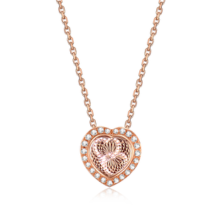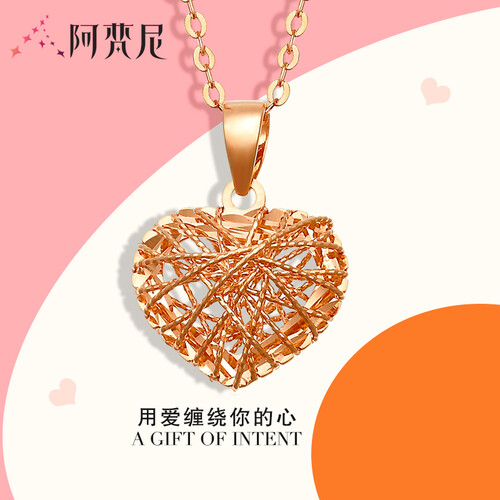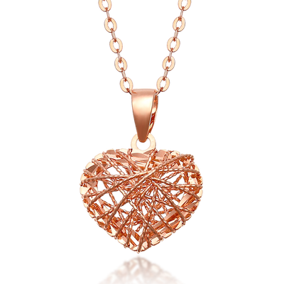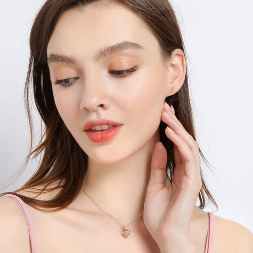玫瑰金色外观,温暖又浪漫,萦绕颈间凸显优雅迷人魅力。简单线条勾勒出立体爱心形状,打造干练气质。