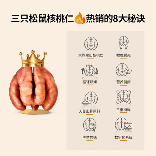源自天目山脉自然生长的山核桃,经过两次水煮工艺,去除涩味,保留原本轻润醇香。不添加防腐剂,呈现自然健康味。