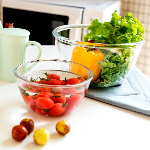使用高硼硅材质,玻璃不含铅和杂质,呈现通透光亮的质感;碗壁厚实,放置时更稳当,坚固不易碎,能够更长久的保存使用。