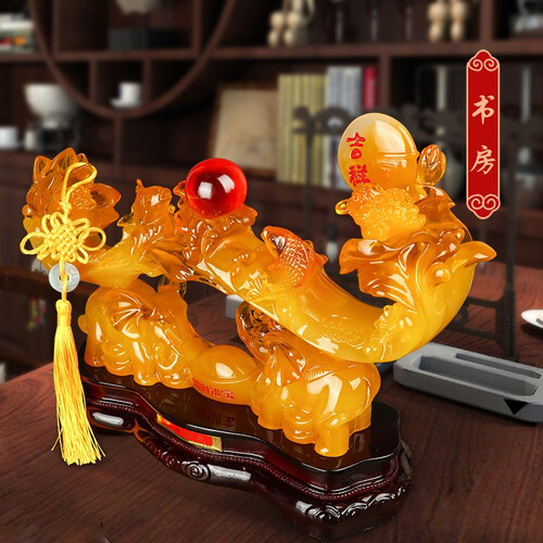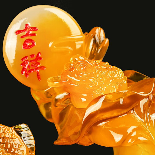 摆件主体部分为树脂材质,光泽明亮不失柔和感,质地更加晶莹剔透,在光照下呈半透明状态,质感十足。
