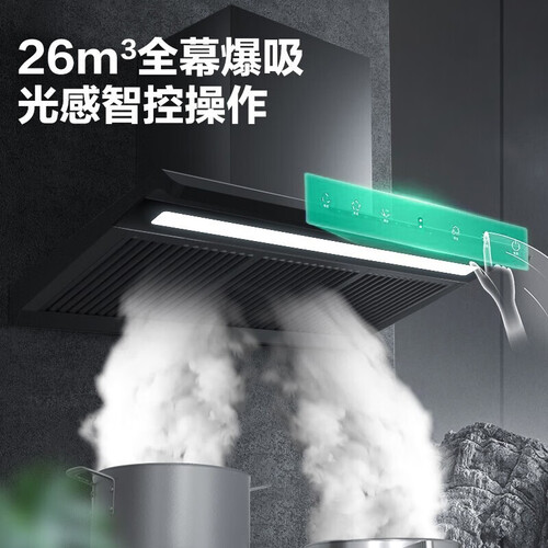 机身造型纤薄不厚重,线条流畅颜值高,易于搭配厨房装饰风格。科学的倾斜拢烟腔,快速带走油烟,余烟无残留。
