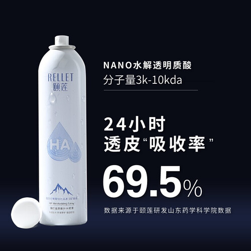 0.2mm喷头口径,喷出的水雾细腻易吸收。富含双重玻尿酸,深层补水保湿,告别干燥沙漠肌肤。选用冰山矿物水,自然纯净,上脸更安心。