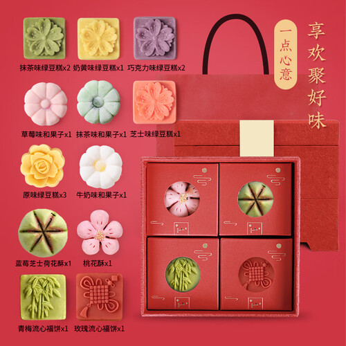 含有多种糕点,Q弹香酥吃个遍,入口满满的都是幸福感。搭配双层质感礼盒,精致美观,新年走亲访友的不二之选。