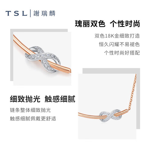 表面融入了亮泽的玫瑰金镀层,温暖亮眼,衬显出白皙的肌肤。采用纤细链条的设计风格,佩戴舒适无感,能够展示性感的锁骨曲线。