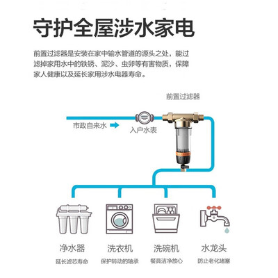 采用过滤冲洗一体化设计,洁净无需拆卸,操作便捷。每分钟可过滤大量水流,同时有效拦截水中杂质,守护家中用水健康。