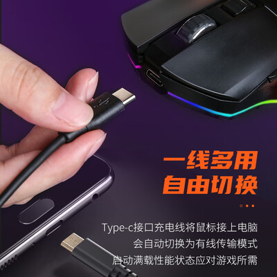 鼠标底盘搭配独特的流动灯效,可以给人们惊艳的视觉冲击,让整个鼠标富有科技感,同时个性十足。