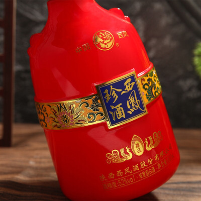 充满喜庆之感的大红色瓷瓶,瓶身金色凤凰图案,栩栩如生,彰显出丰富的中国传统文化底蕴,适合婚宴喜宴等多种场合饮用。