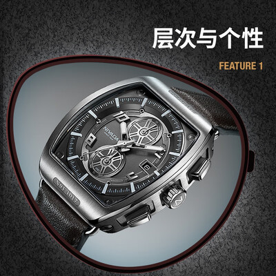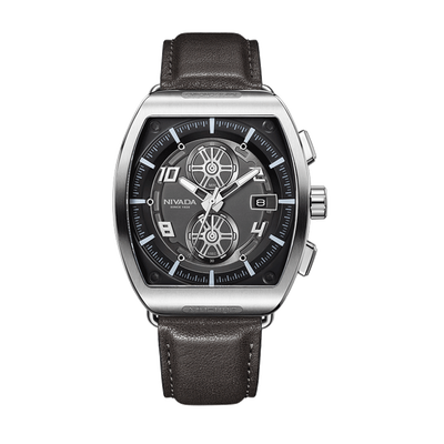 别致的酒桶型表盘,彰显出一丝复古感。立体的多个表冠设计,轻松调节校准时间,银色的表圈增添典雅的气息。