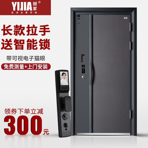 颐家 隔音简约防撬智能锁防盗门