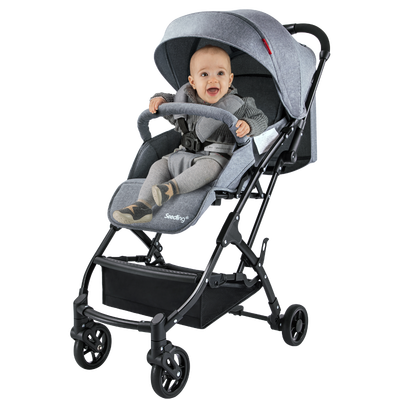 采用轻质碳钢一体化车架,全车无尖锐点设计,有效避免宝宝的误伤。慢回弹避震系统设计,轻松应对任何路面,如婴儿床般安静享受。