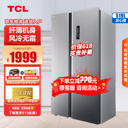 TCL 风冷对开门冰箱