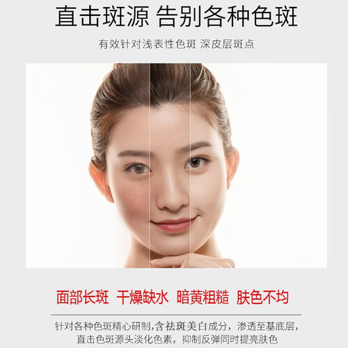 蕴含烟酰胺美白成分,可抑制色素沉着,减少色斑的形成,恢复肌肤的细腻光感。添加的植物精粹改善肌肤暗黄,还原肌肤的净白透亮。