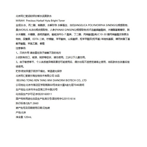 同仁堂 水润焕亮护肤套装