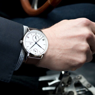 耐看不易过时的白色表盘,加持亮蓝色指针点缀,展现复古气息。品质的自动机械机芯,提供稳定的动力,使走时更加精准。
