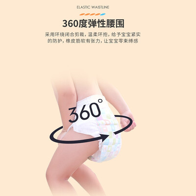 加高4cm的护围,更贴合宝宝的身形,有效防漏。360度的弹性大腰围,如同妈妈双手一样呵护宝宝小屁屁。