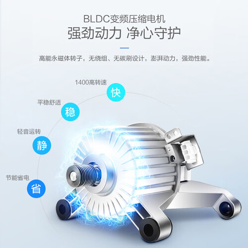 BLDC变频压缩电机,实现动力稳定输出,确保污渍的净除。多重洗涤程序,满足您多样化洗涤需求,选择不再单调。