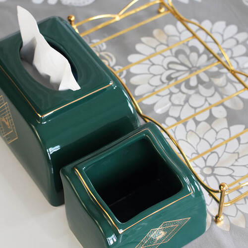 由陶瓷材质打造的这款纸巾盒装饰品,兼具艺术和实用功能,轻奢欧式风格映入居室,瞬间提升家的品味。