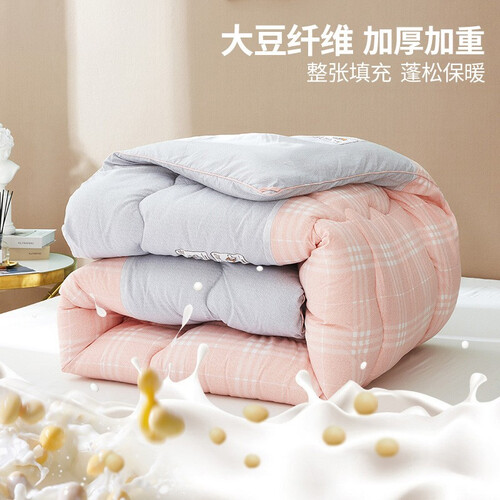 大豆蛋白纤维,手感柔软,触感柔软舒适,吸汗排湿,给人带来良好的睡眠体验。