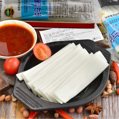 甄选土豆粉制作,采用了高温熟化,非油炸,更健康。手工制作,经过自然晾晒,口感劲道不易起团,吃起来更细腻爽滑。