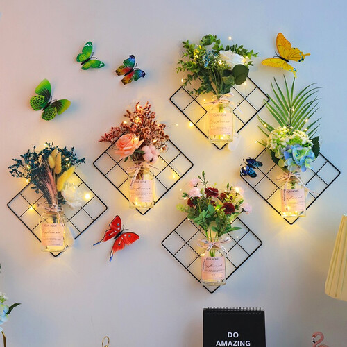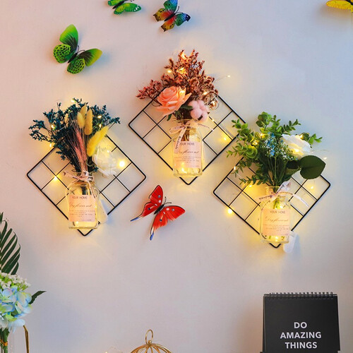 精美花束颜色鲜艳饱满,色牢度高,长期摆放也不会褪色;配有灯串,能够缠绕在壁饰上,为您营造浪漫甜蜜的居家氛围。