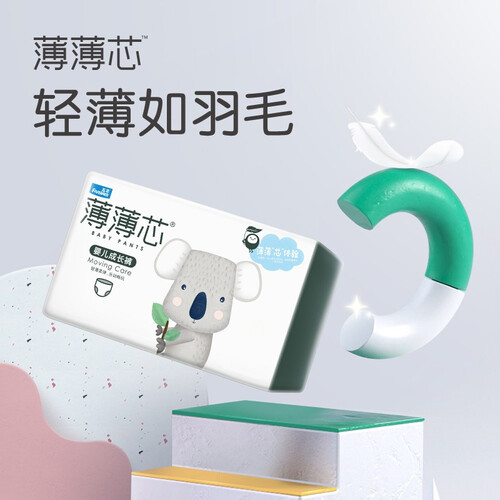 运用数百次研究调整的超薄芯技术,创造出0.2cm薄薄芯,轻薄透气不闷湿。0.025kg的重量减掉宝宝多余负担。